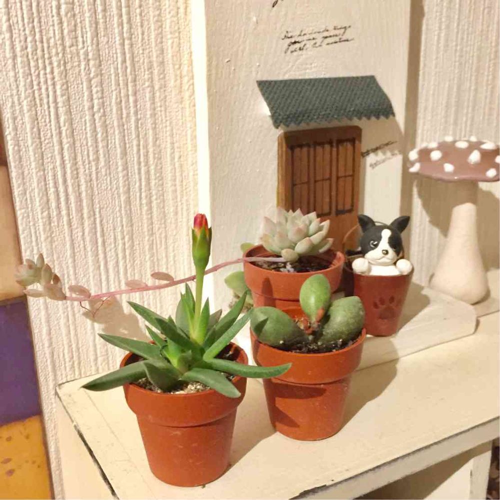 寄せ植え用に売ってた小さな小さなひとつまみ多肉さんを連れて帰りましたけど、ひとつひとつがこのままでも可愛すぎて玄関で眺めてる。