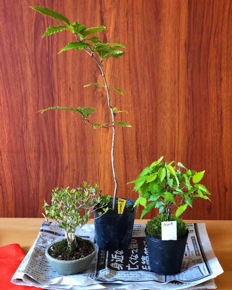 江戸時代から四百年続く浅草の植木市で、香丁木 2,000円と、富士ブナ 400円鉢別と、ケヤキ 1,500円鉢別を購入
