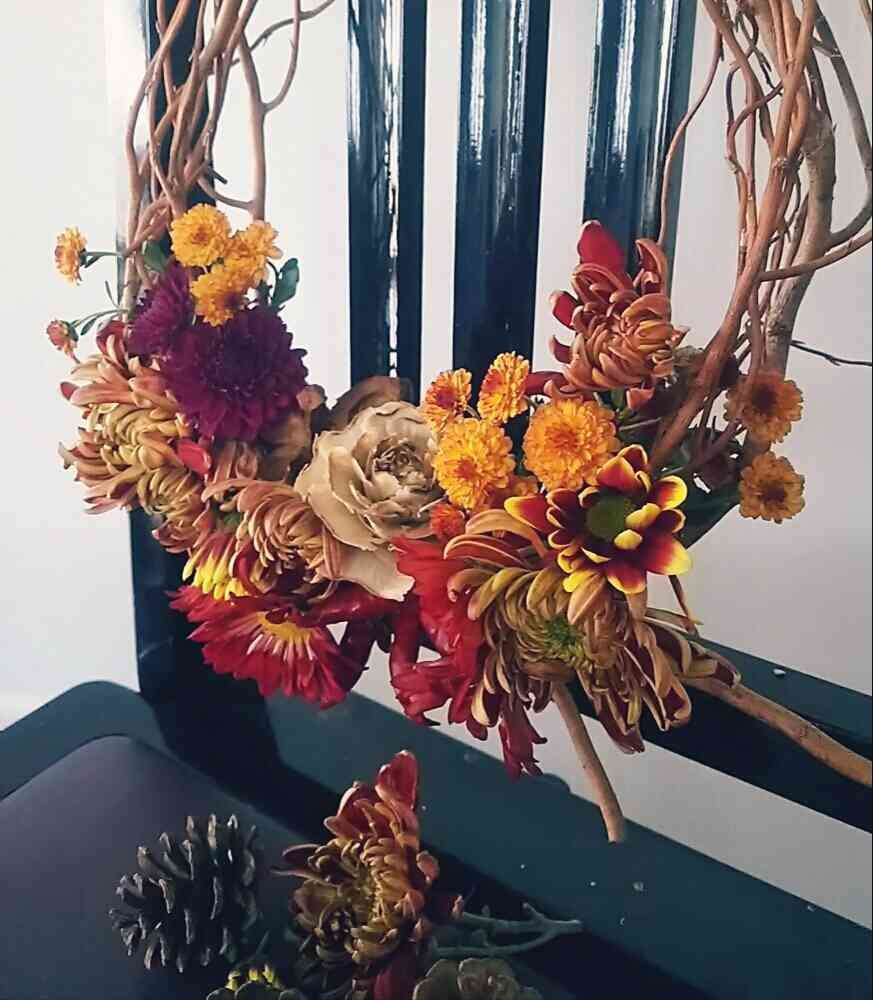 菊でリース、、自分では けっこうひらめき💡と 思ったんですが、まぁ、、凡人です(*´・ω・`)bから、これでいいか~(*ノ▽ノ)と、、。