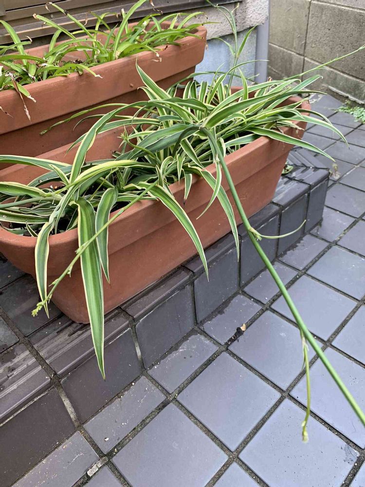 季節も良く、取り敢えず移植したオリヅルランが四本のランナー伸ばしていました。😄