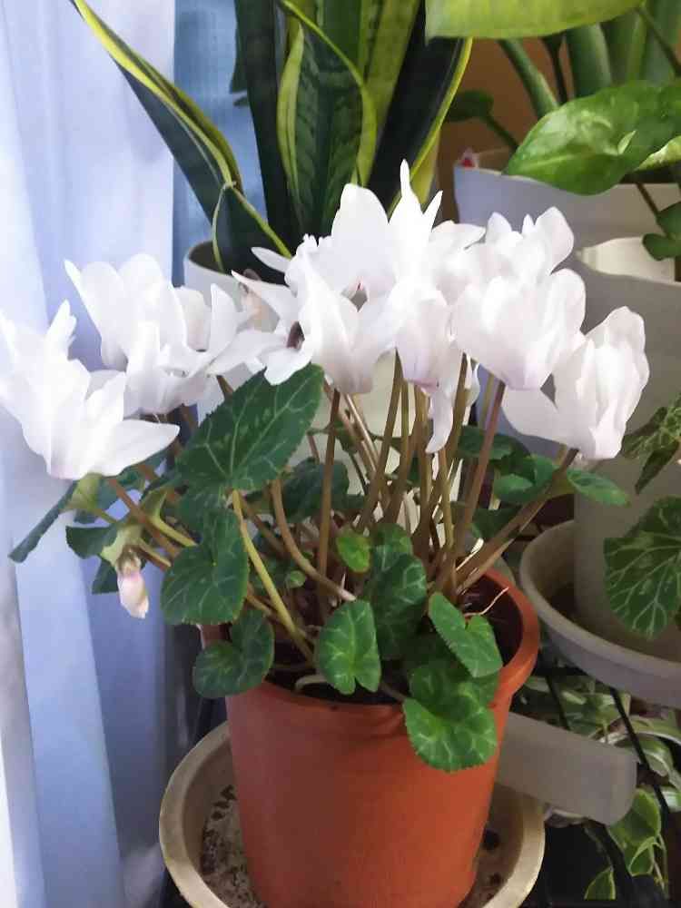 隣には赤のシクラメンが居ますがこちらは昨年からずっと咲かなかったのに今蕾が沢山上がってきてます😂