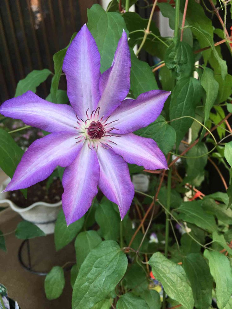 プリバルチカ。四月の中旬に苗を鉢に植えた状態で実家の母にあげました✨ジャックマニー系の新枝咲きでバッサリといけるのがいいですね😆花姿は美佐世によく似ています。とても元気で、誘引が手に負えない状態だったようなので、新しく誘引資材を用意して誘引し直してきました。これからどんどん蕾が出てきそうです♬