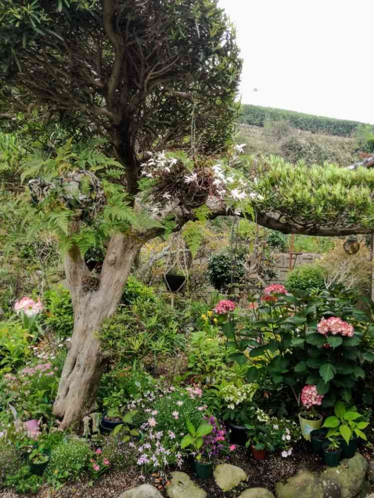 玄関のプランターの花を 薪や松の根元に植え替え ただ今庭づくり中です😄