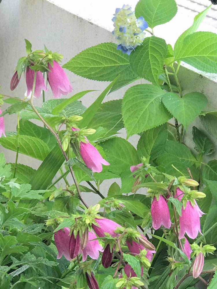 ベランダの ホタルブクロ ( 蛍袋 ) と アジサイ( 紫陽花 ) も