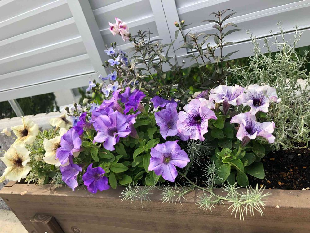 ペチュニアの色も他の花の組み合わせも素敵ですね✨癒されました😊