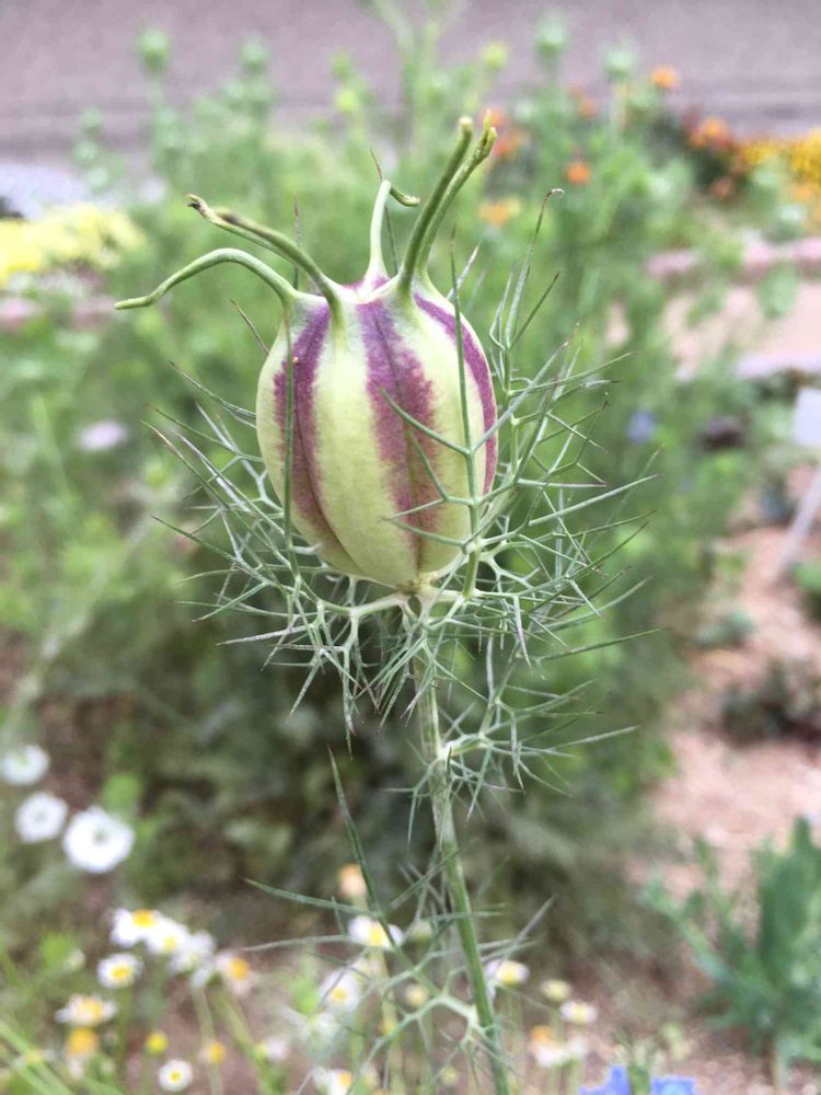 暇だったのでお庭を見たらニゲラがありました。インパクトあるなぁー💦