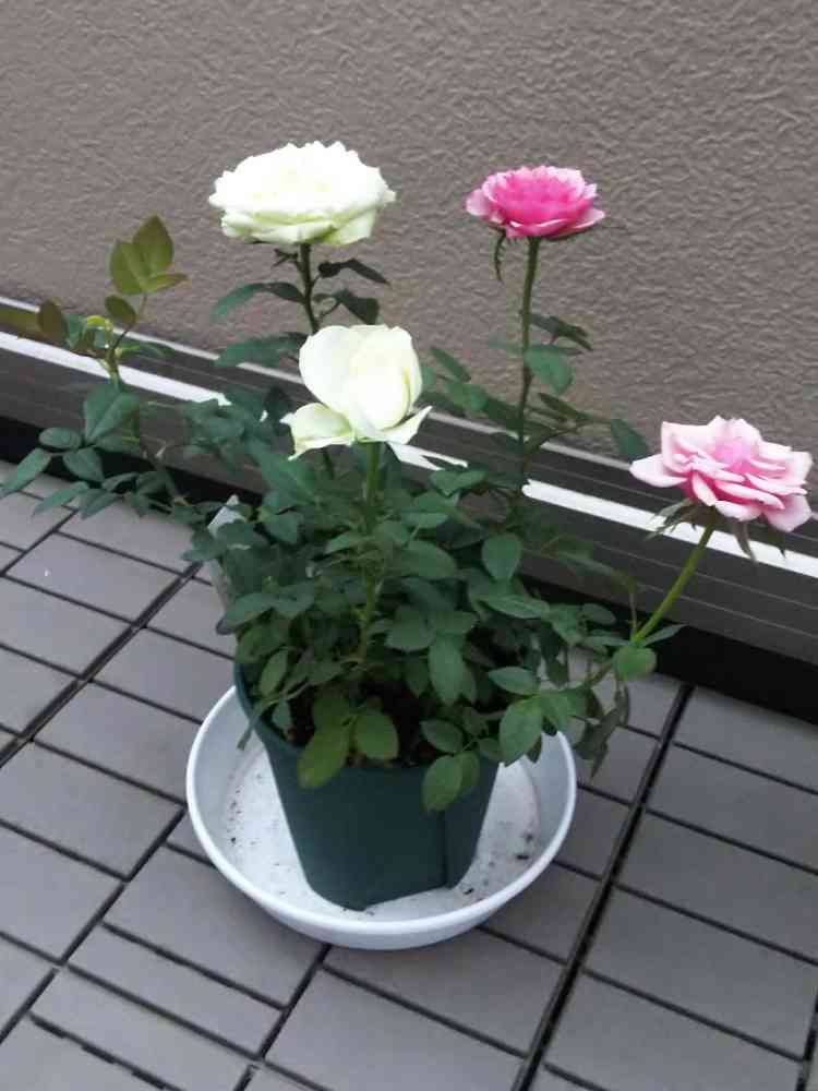 他のミニバラ達は単色だったのですが、この鉢だけ、白とピンクの花が咲いてたのです☺️