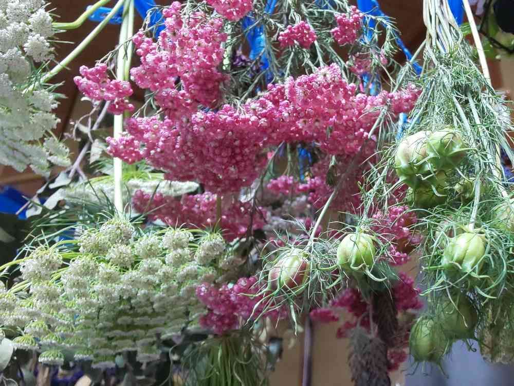 庭で咲いたレースフラワー、ライスフラワー、頂き物のニゲラをドライフラワーにすることにしました🎵