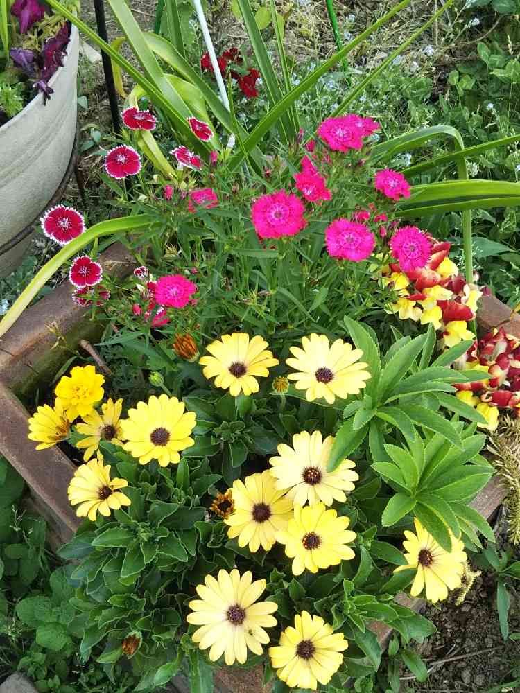 母が植えた寄せ植え!テラコッタの中で咲き始めました♡