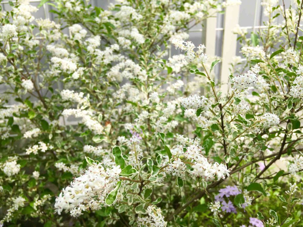 満開です。名前を忘れてしまいました💦ジューンベリーの株元に植えてあります。今の時期はホワイトの小花が庭ん明るくしてくれて、気に入っています。