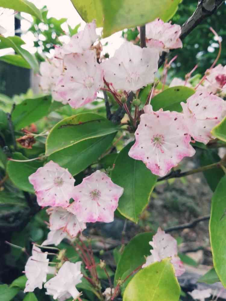 こ、これはカルミア?!公道の植木の影にひょこっと咲いてた。意外なところで出会えて感激。私も庭にお迎えしたい。
