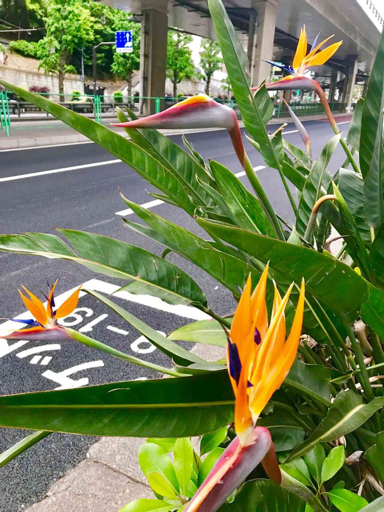首都高下の道路沿いに今年も極楽鳥花がたくさん咲いてくれました(´▽`)ホッ 💧蒸し暑い時期にはぴったりです✨Fu〜