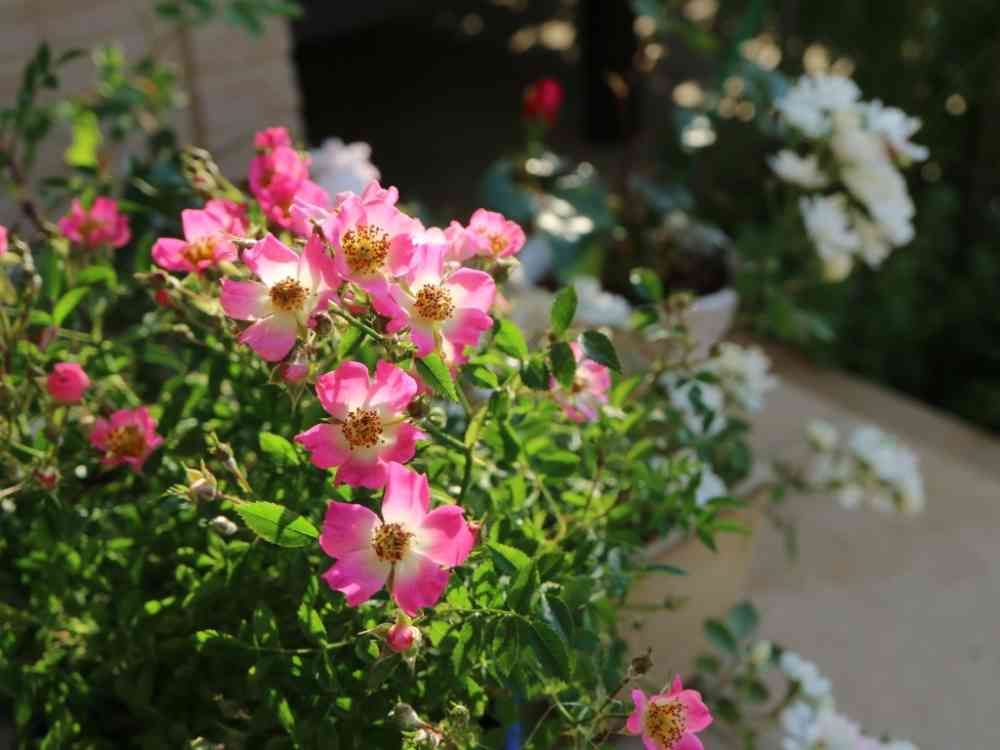 玄関前、今はミニ薔薇や挿し木して咲いた薔薇の鉢を入れ替わり立ち替わり並べて楽しんでいます💞