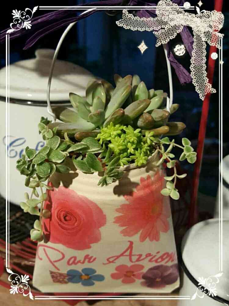 リメ缶作りから2日がかりで仕上げました〜🎵