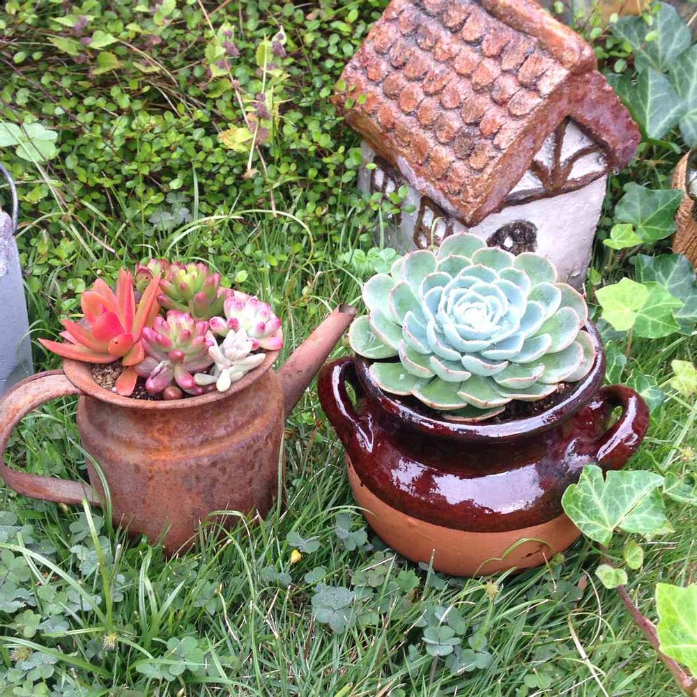 この前のロハスで買った錆びポットとアジア雑貨屋で買った素焼きの壺に多肉を植えました^_^
