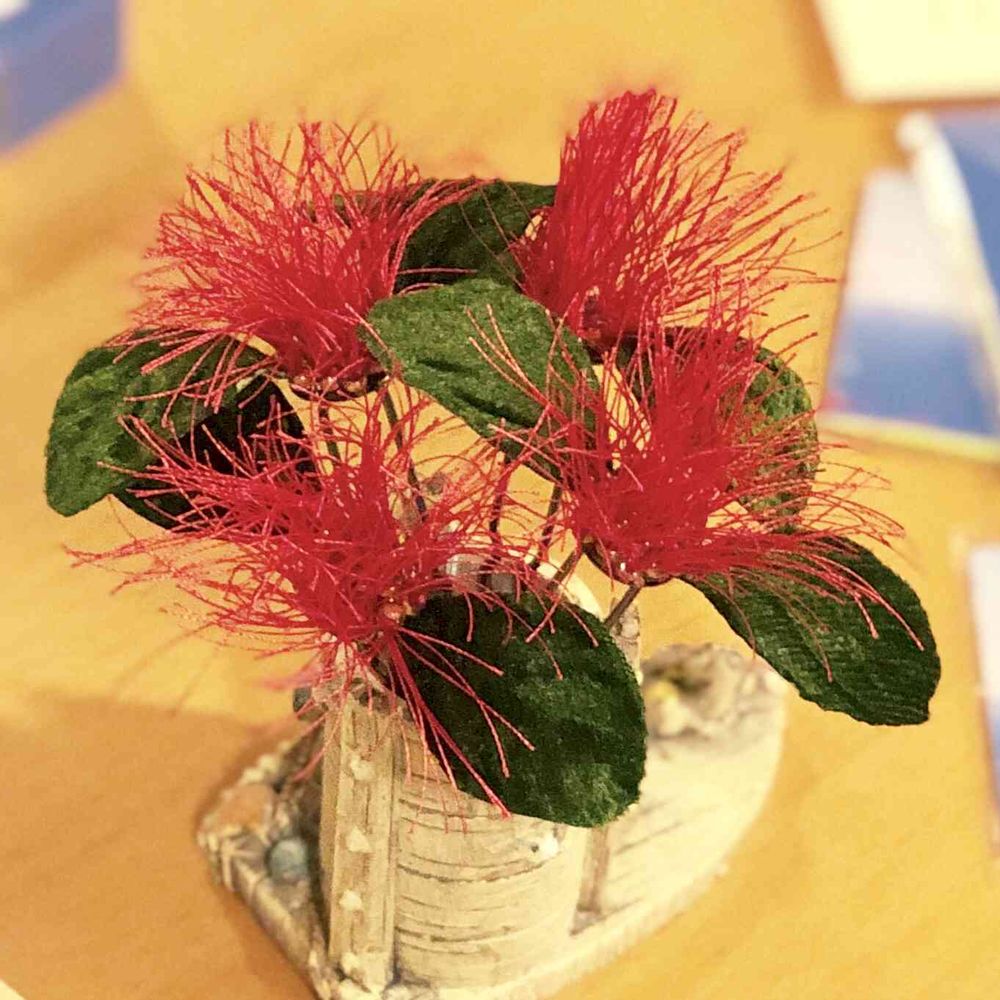 束ねた髪にオヒアレフアをワンポイントで飾るのイイですね(๑′ᴗ‵๑)