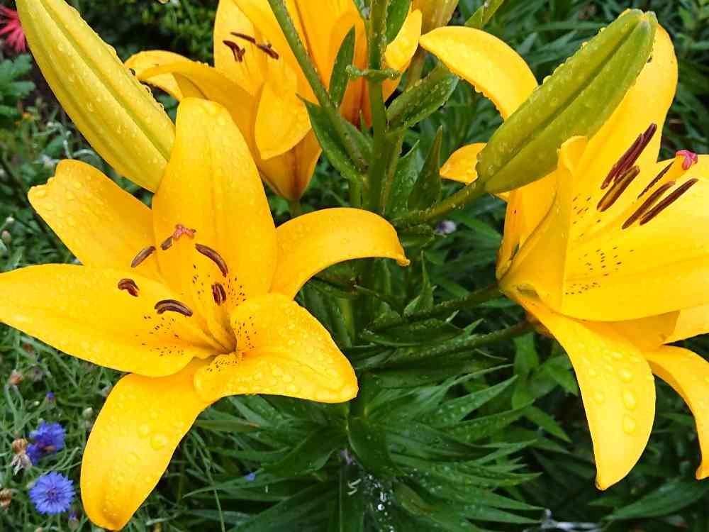 母が大好きなすかし百合です雨の降るなか元気に咲いています😃強風でも倒れなかった強い子です😆🌼🌼🌼🙆