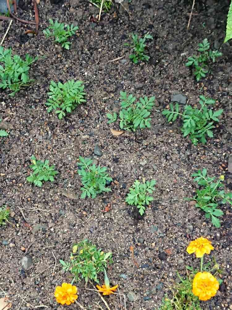 子供達とダイソーの種から育てたマリーゴールド🌼プランターから大きくなったので地植えしました😃少し背は低いですがもうすぐ花が咲きます😃✨✨✨楽しみ😌✨✨✨🌼🌼🌼