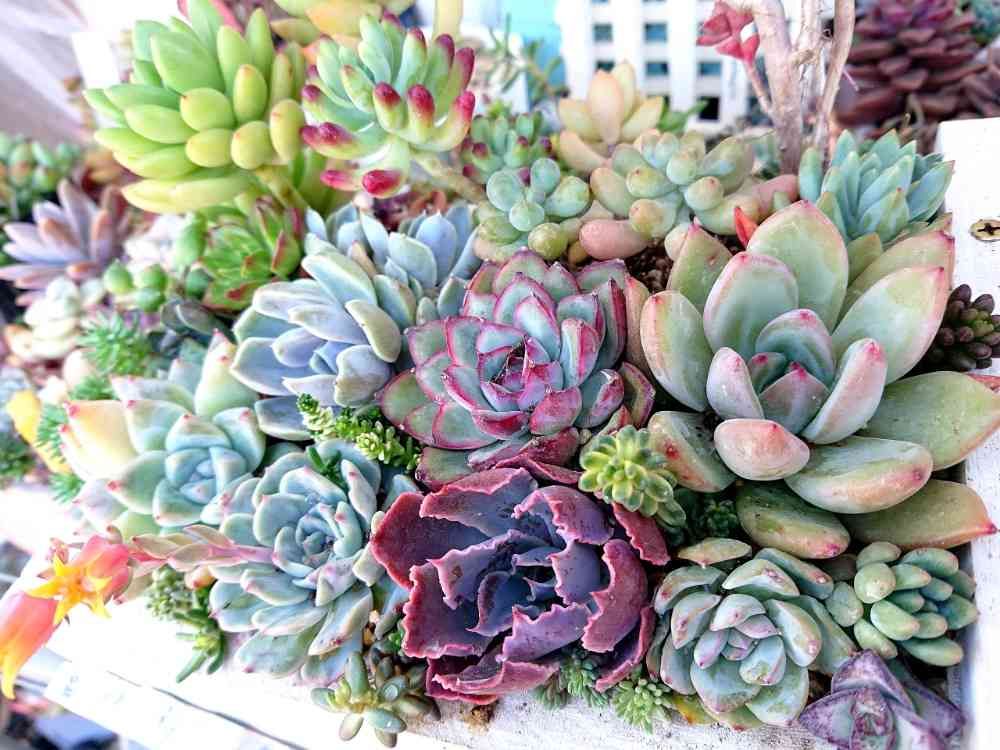なんて色とりどりの多肉寄せ植えなのぉ✨