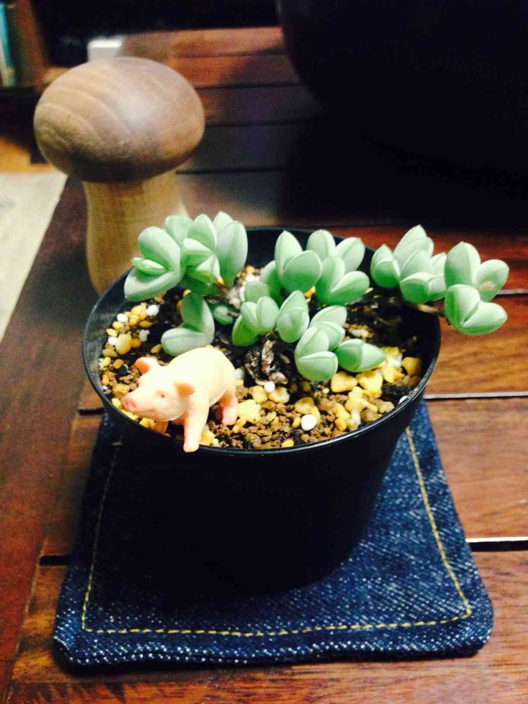 植替えしたいけど鉢が無いからブタさん乗っけてみました(*ノε` )σ