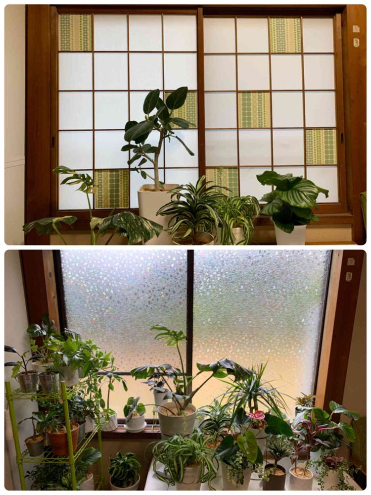 障子を外して、窓に防犯と直射日光を避ける為に、シートを貼りました😊