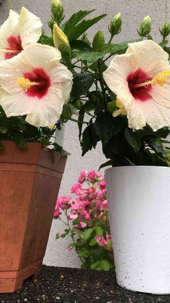 お仕事から帰ってきたらハイビスカスさんが、3つ咲いてました🌺🌺🌺