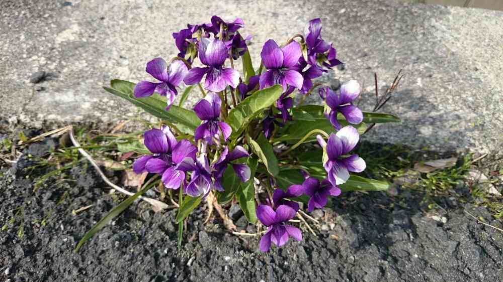 写真のスミレは、家の前の道端で毎年咲いているヤツです。
