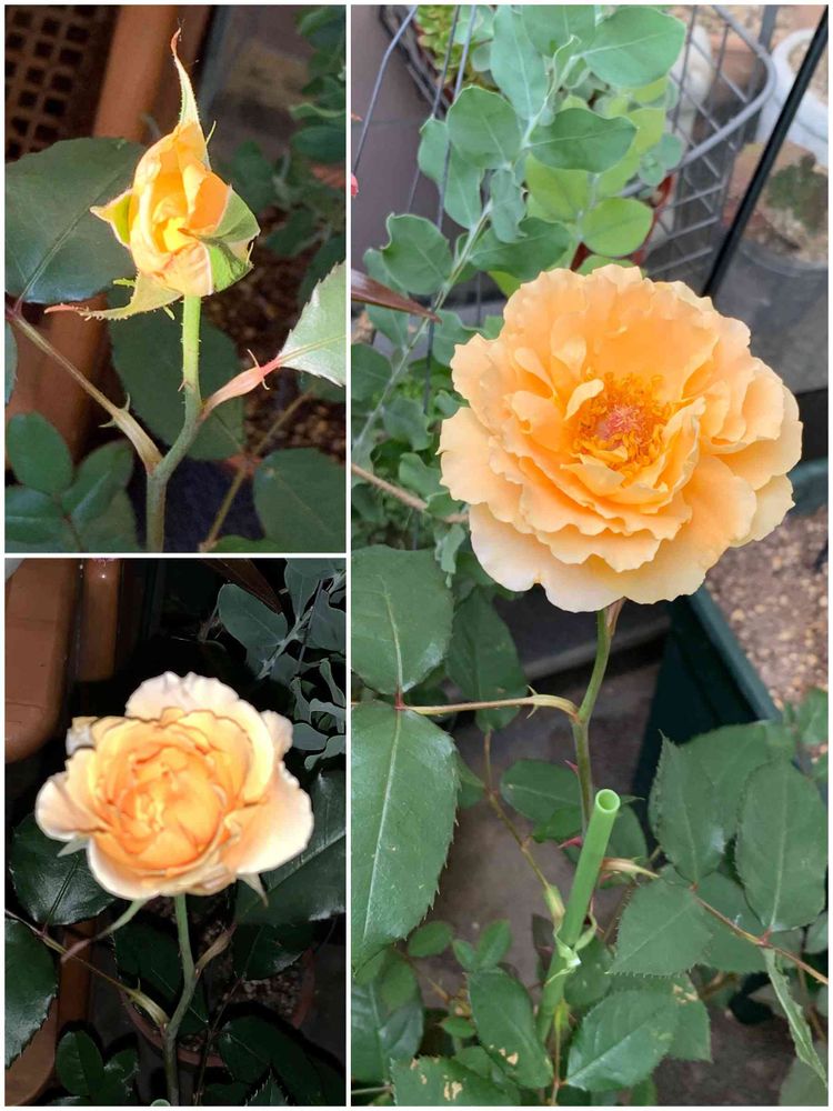 先日お迎えした新苗さん🧡アプリコット系のハイブリッドティーローズでした♫昨日の朝蕾がほころび始め、夜にはしっかり開花していて今朝はパッカーン❣️フリフリの花びらが可愛いくて、香りも良いのです😊