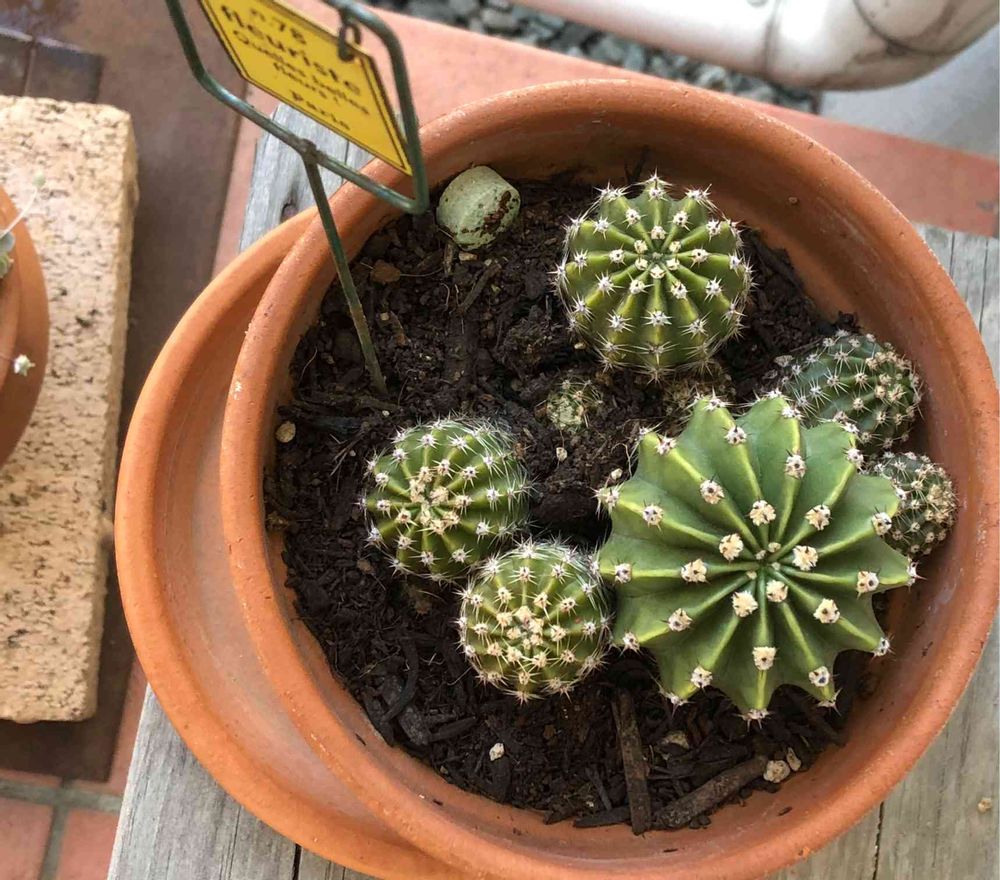 短毛丸?でしょうか?数年前に頂いてなんとか冬越しして少しずつ大きくなっています。少しピンクがかった白い花が咲きました😆今年も咲くかなー