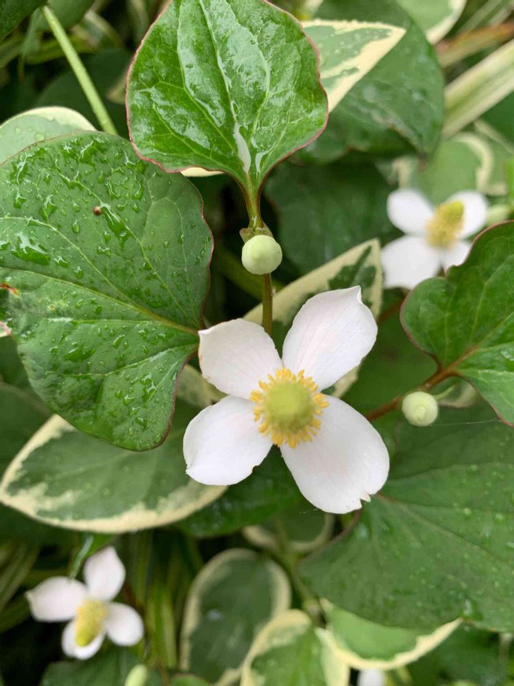 昨日からの雨に濡れて潤っているドクダミさんです(๑・̑◡・̑๑)