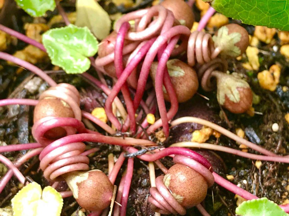 シクラメンが種を土に戻す現象は知っていましたが、このコはクルクルまで😍