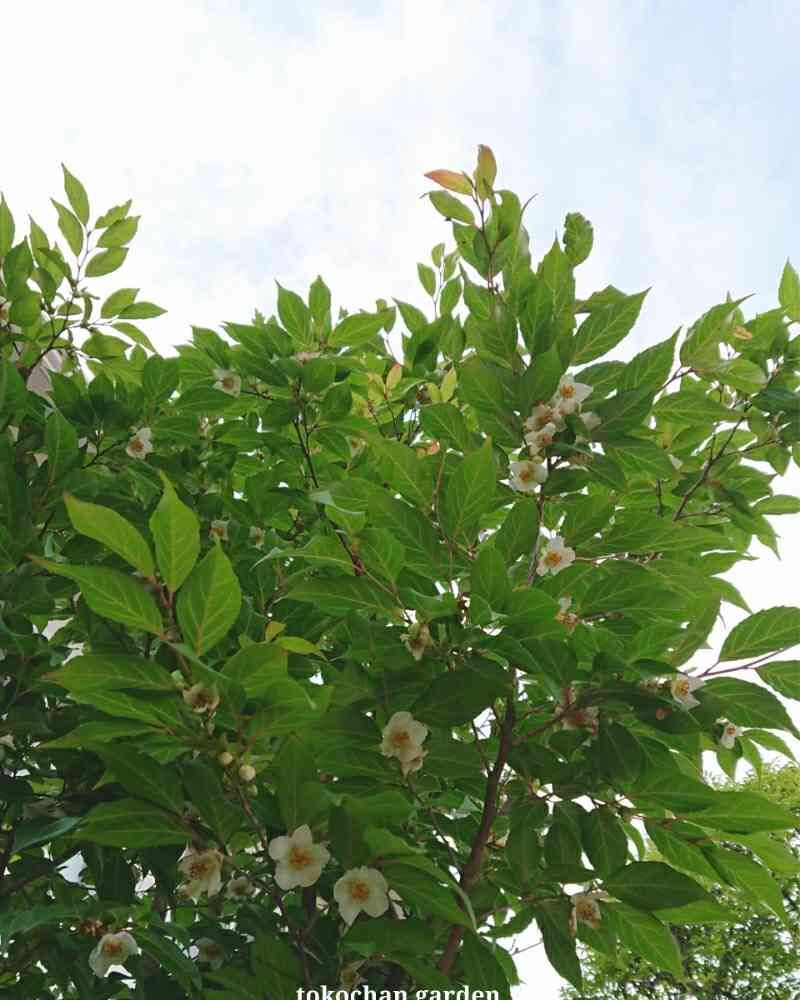 今年も気がつけば咲いていたヒメシャラ。枝葉の下側に咲いているので下から見上げるようにしないと気がつかない?(^-^;