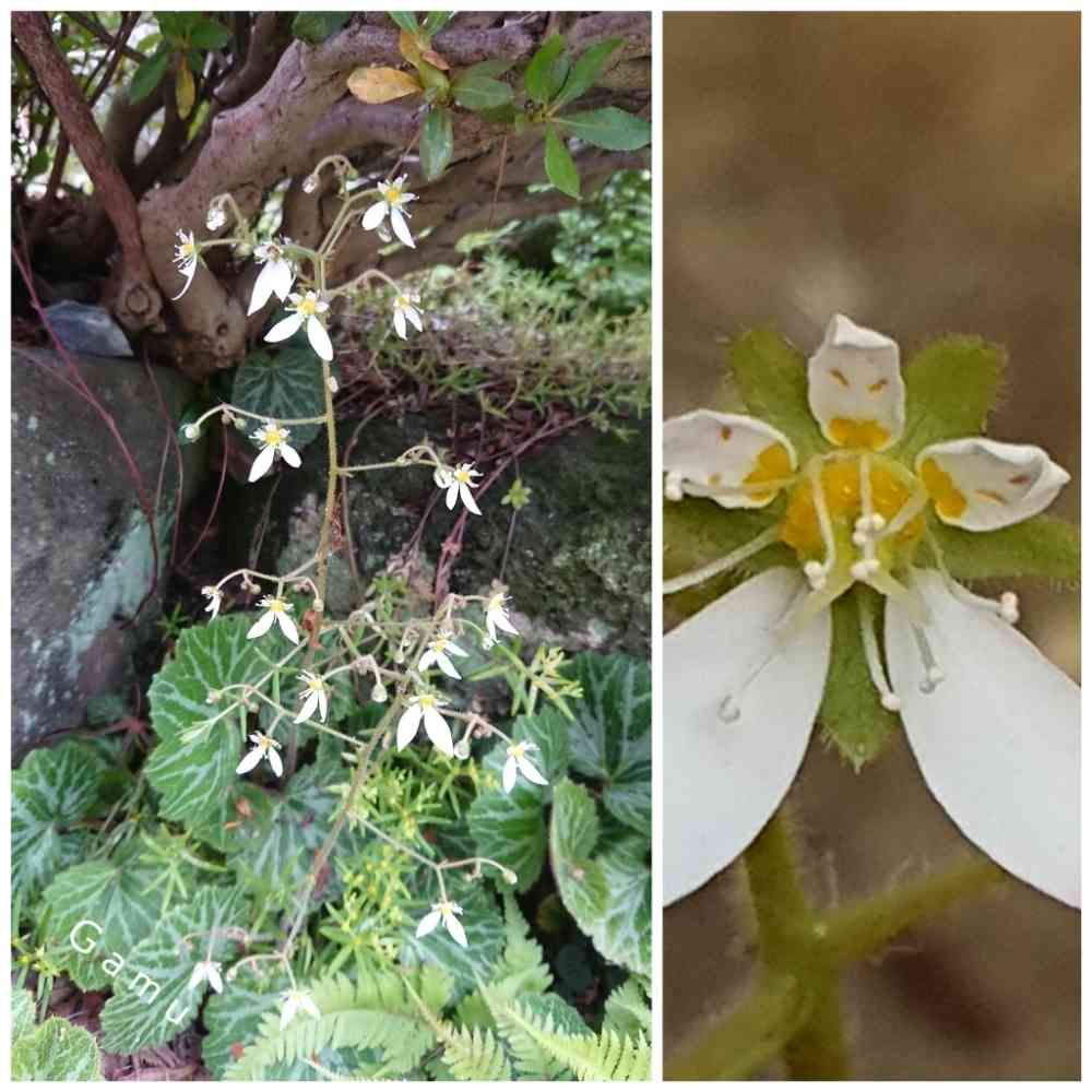 皆さんの投稿とうちの花の違いが気になって、いろいろ調べたら、いろいろ出てきましたぁ🎵葉っぱが常緑で雪が降っても雪の下に緑の葉があるので、ユキノシタと言う名前だそうですよ。