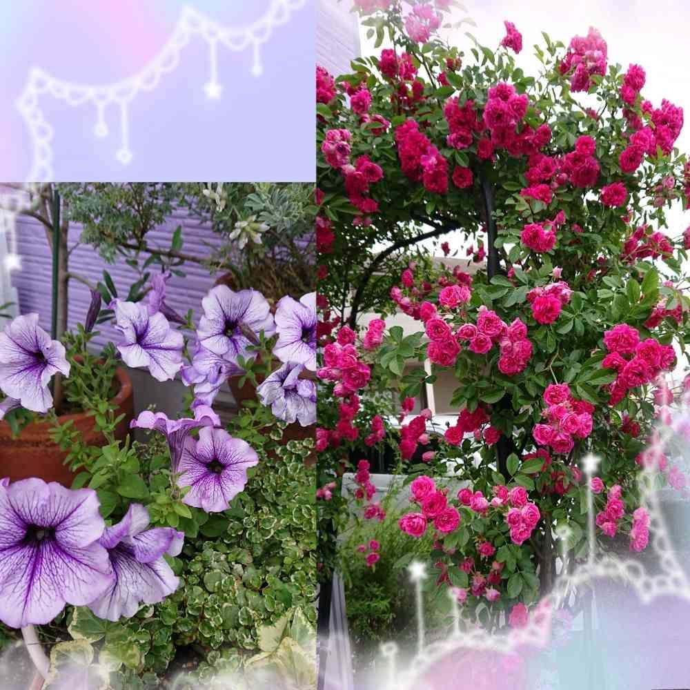 nonohanaさんの小さな庭,ペチュニア,スーパーエクセルサ つるバラの投稿画像