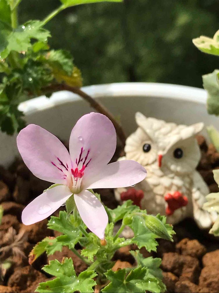なんと可愛いゼラニウムとフクロウ🦉( ◠‿◠ )