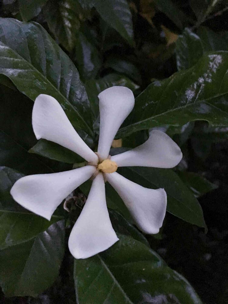 薄暗い場所から、花の匂いがしていたので見ると、くちなしの花が咲いていました。とても良い匂いですよ。