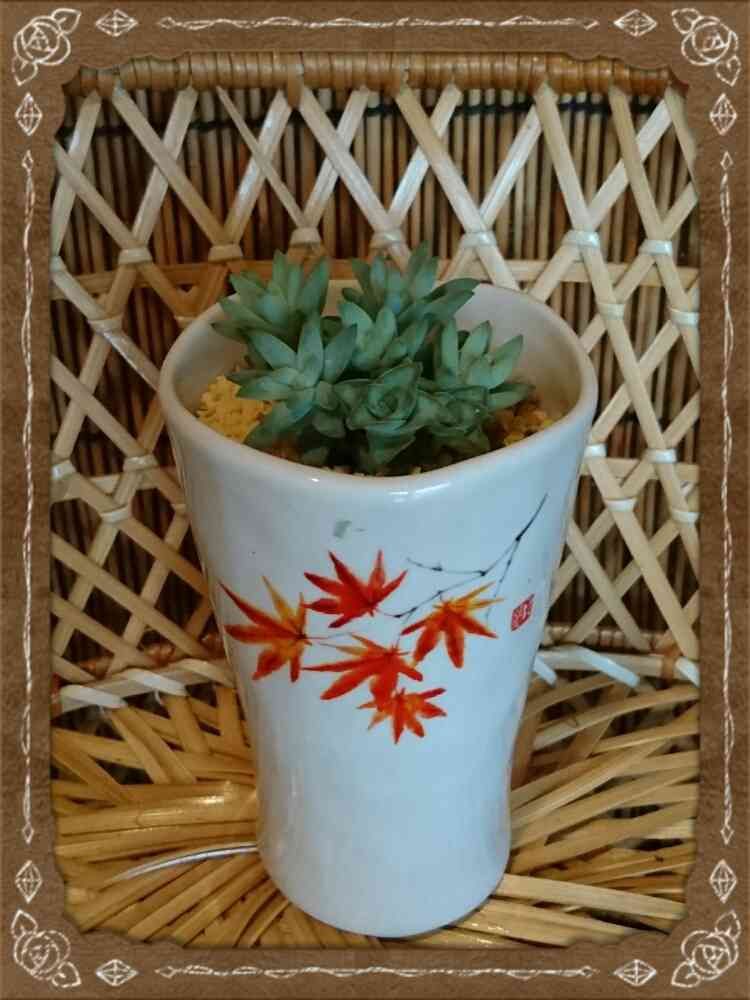 今 だけしか使えないもみじのコップに多肉ちゃん植えました🍁