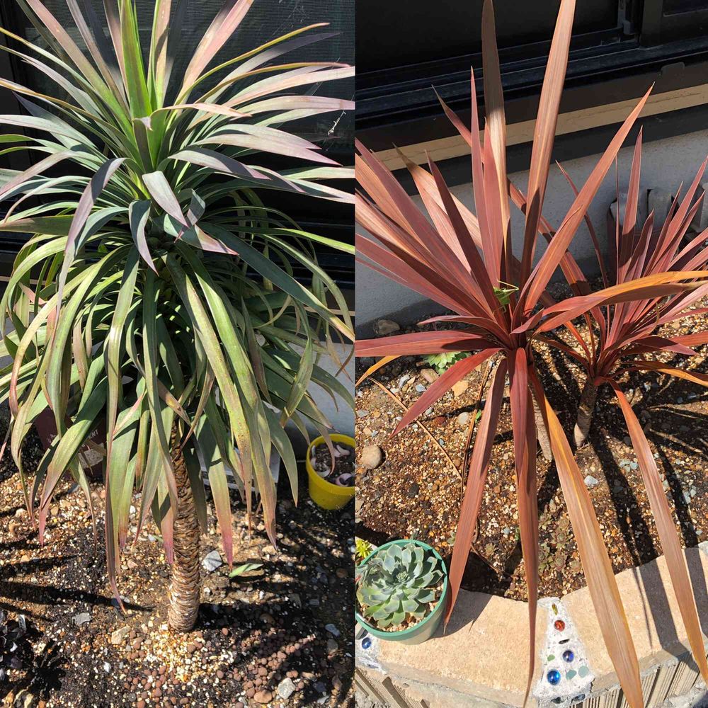 デスメティアーナとコルジリネが地植えにしたらどんどん葉っぱの数を増やしてきました😳✨✨