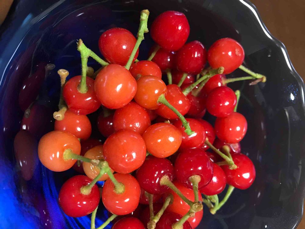 さくらんぼ🍒の収穫今年で2年目、肥料も 手入れもしなかったので ちょっと小ぶりですが、量もちょっと増えて味もしっかりとさくらんぼです。^_^