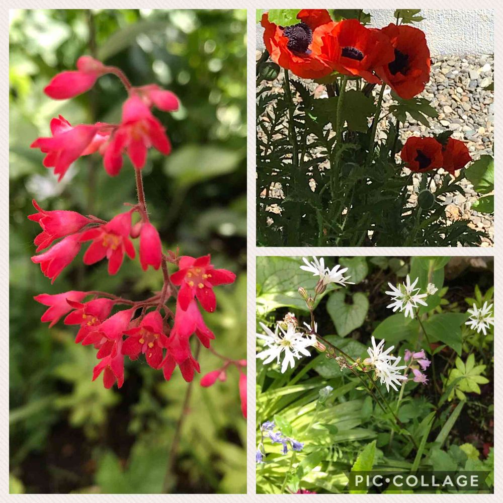 白いお花は リクニス! 植えた記憶がありません😅💦。