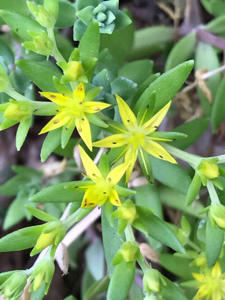 ツルマンネングサ(蔓万年草)。この仲間達は、みんな同じ様な花をつけます。・・・何が何やらサッパリ分からず・・・。😃😃😃✌️
