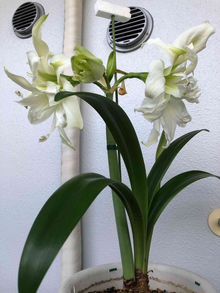 バルコニー/ベランダ,アマリリス ホワイトピーコック,鉢植えの投稿画像