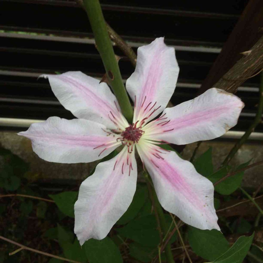 白い花びらにピンクのすじが入って、ワインカラーのシベも綺麗✨