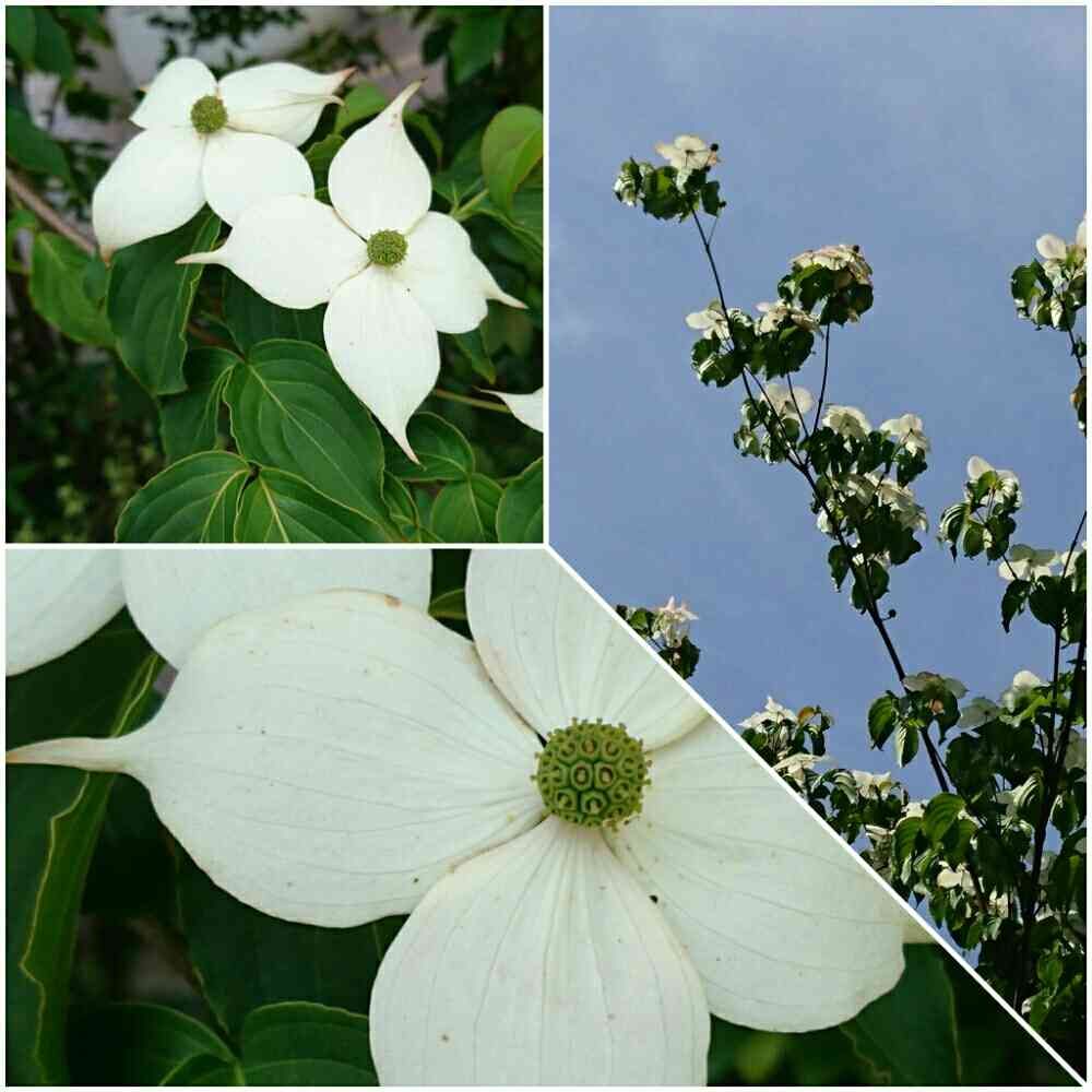 ♣白い花びらのように見えるのはハナミズキと同じ総苞片で、真ん中に見えるのが頭状花序で小さな花が集まったものです♣