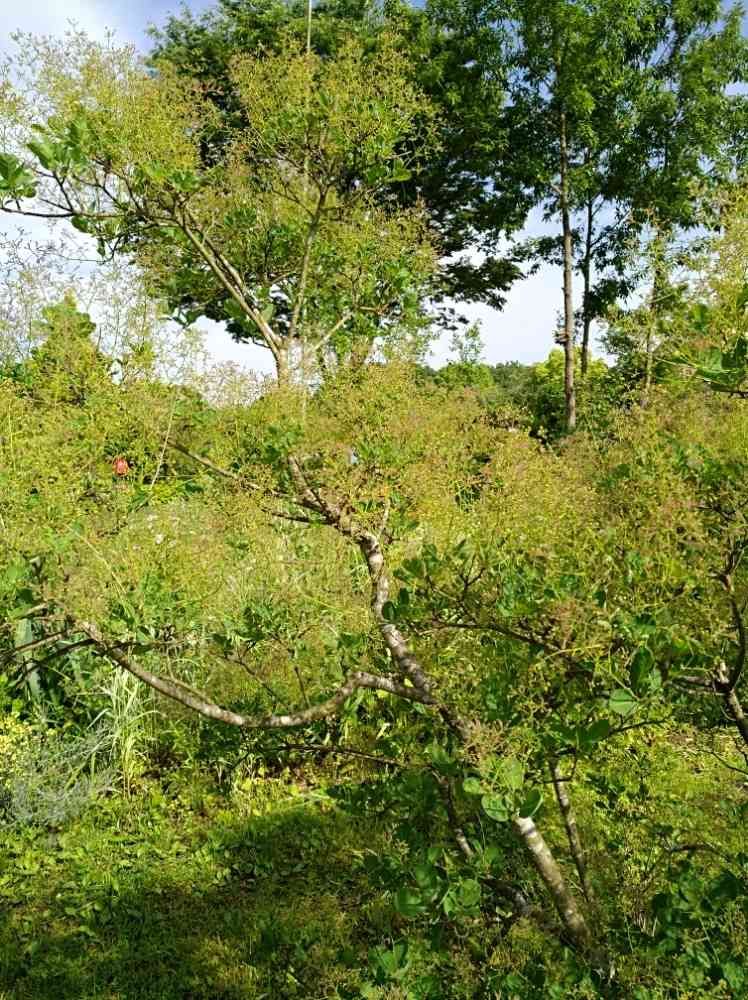 ポワポワの花がまだ開いていないけど、葉っぱがスモークツリーです👍
