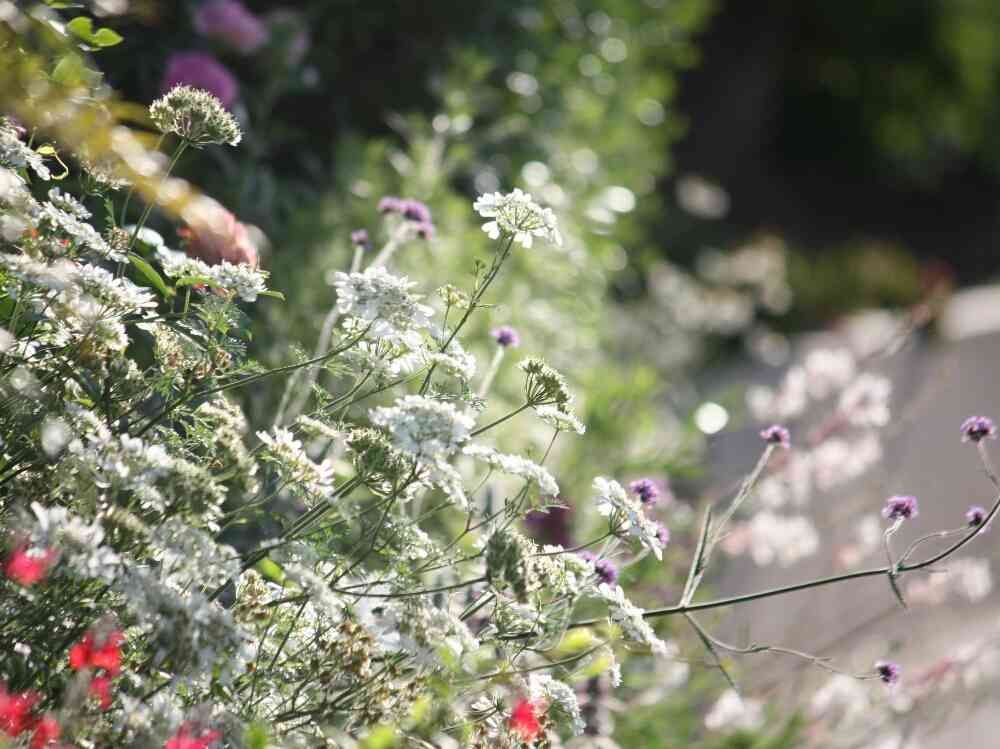 紫のサンジャクバーベナは本当に3尺1メートル近く伸びるので、花壇のアクセントになっています😃