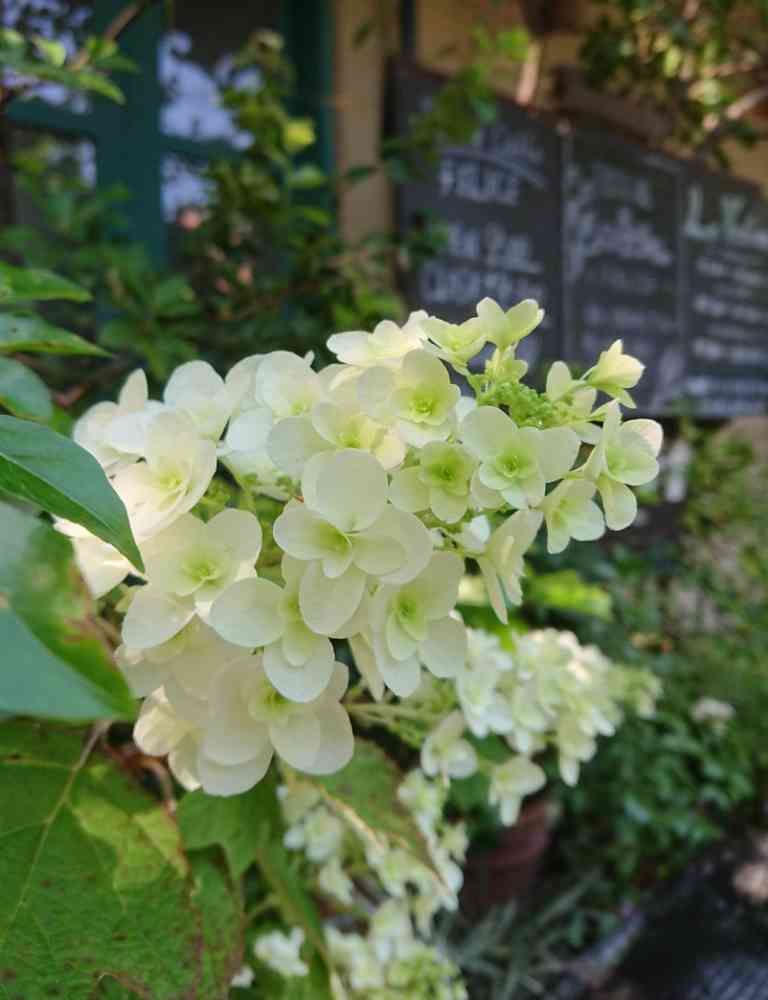 近所のイタリアンレストランのカシワバアジサイが咲き始めました。
