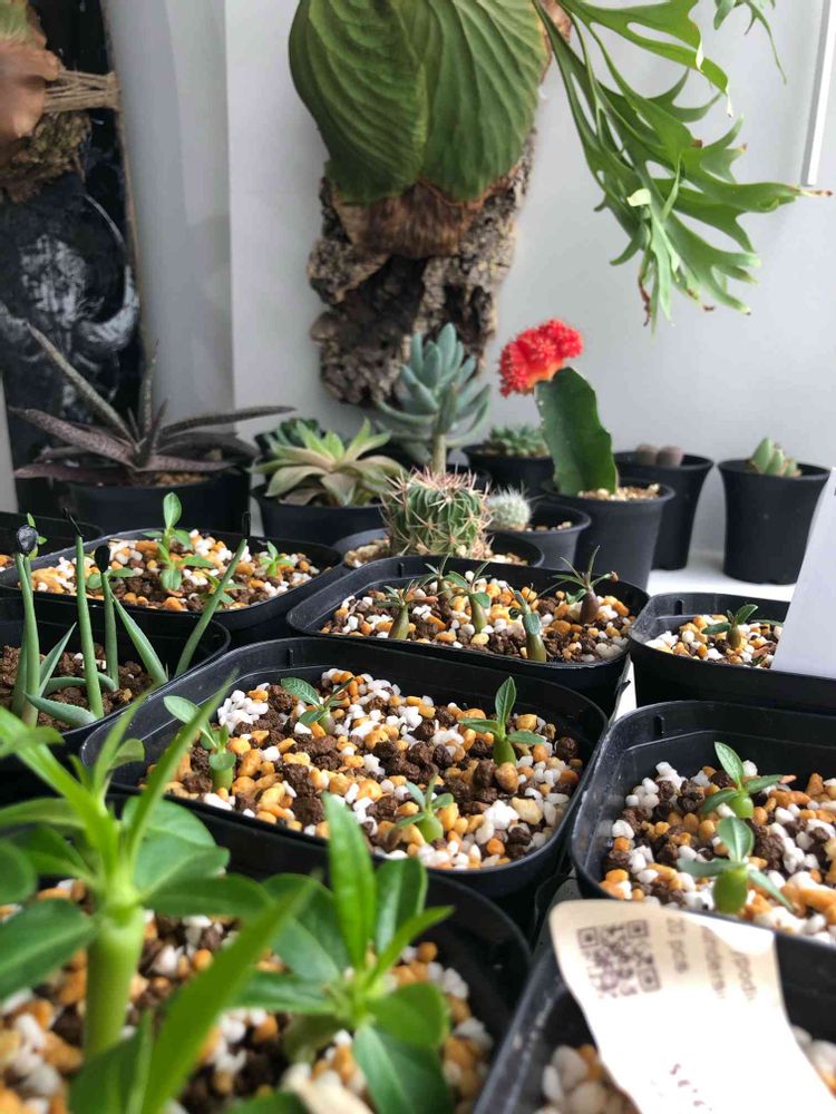 仕事中にサボって植物愛でてます アデニウム ユーフォルビア パキポディウム ビカクシダ とか 植物初心者なのに実生とかしてます笑