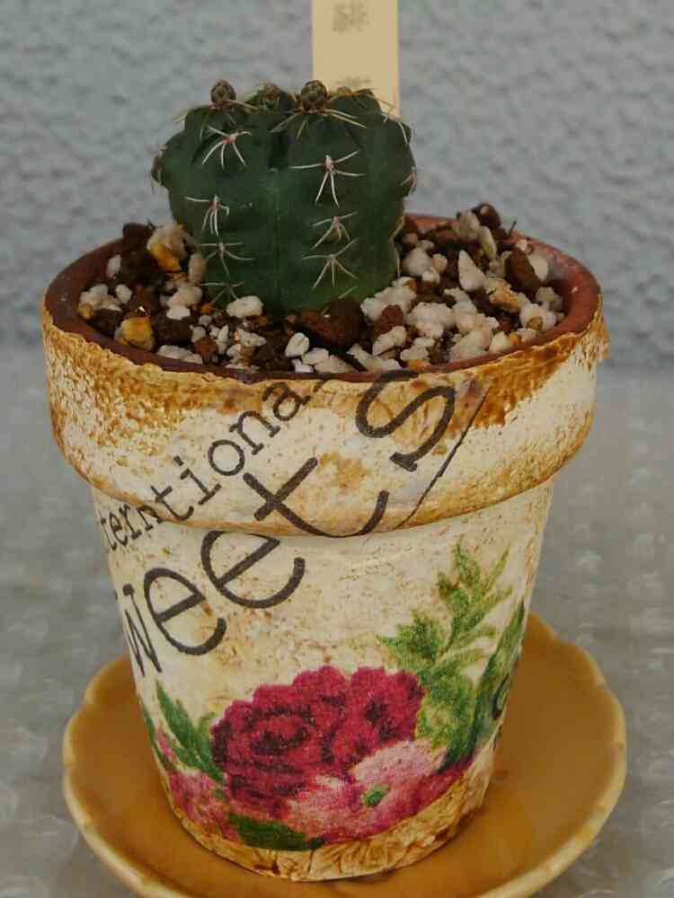 yubara さんに、いただいたリメ鉢に、🌵サボテン 緋花玉 植えました🎶
