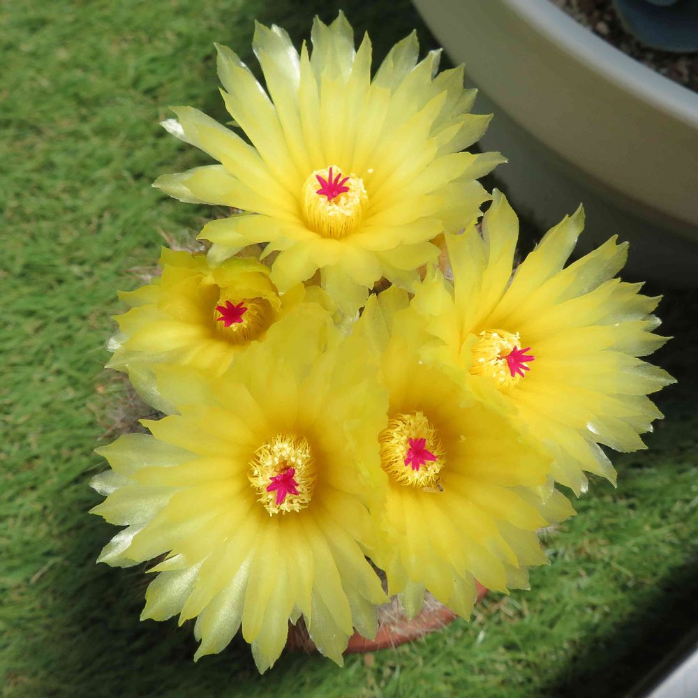 一年前に花に惹かれて入手した銀小町。今年も本体が見えないほどいっぱい花を咲かせてくれました。サボテンは植え替えが苦手でほとんど持っていないけど、見事な花を見せてくれますね。